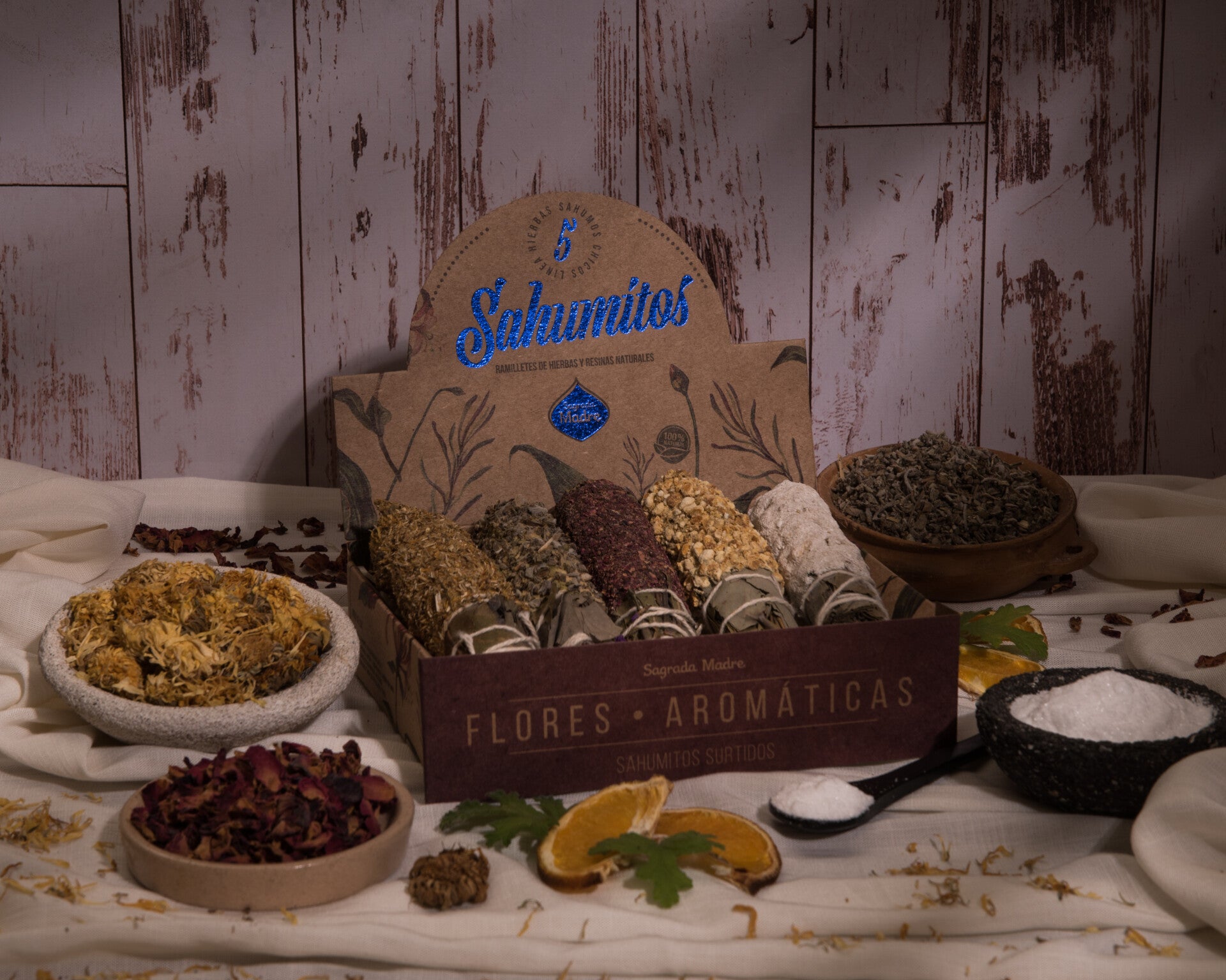 In dit fraaie doosje zitten vijf smudgesticks met de zoetige aroma's van bloemen.