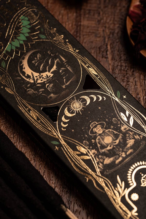 Visualiseer een geheime tuin waar de geur van lelies, bloemen, en de geluiden, maar ook de stilte van de natuur je omringen. Laat de geur van de wierook je omgeving vullen, waardoor er een serene sfeer ontstaat.