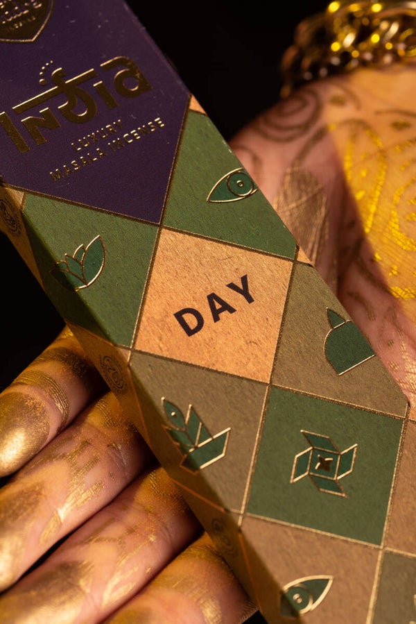 In het mooie kleurige doosje zitten acht stokjes die elk zo'n anderhalf uur branden.